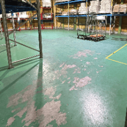 倉庫運用を始めてから、定期的に床の塗装剥がれがありその都度定期的に自分たちで塗料を購入して作業をしていたが、素人施工になっているので塗りムラが出ており定期巡回のあるお客さまからの指摘もあり、現場改善をしたく依頼になります。床全体がボコボコになっている部分もあり、綺麗にしたい。